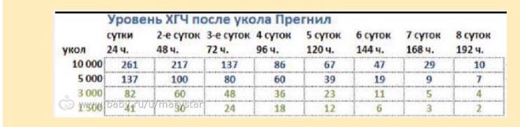 Но ещё не забывайте о том, что организм у всех разный. У меня хгч 5000 выходил 12-13 дней. А у кого-то 7...
