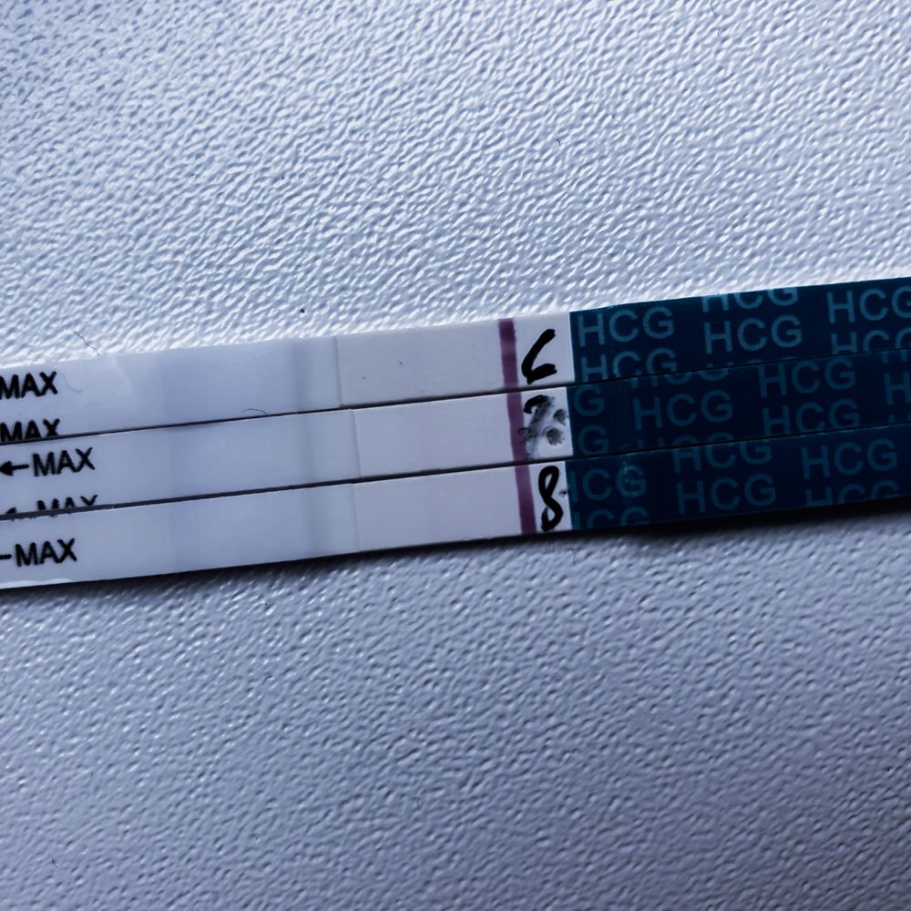 Лично я наблюдаю динамику по тестам. При прошлом пролёте на 6дп был призрак, на 7 дп - ярче. А вот на 8 ничего не поменялось, сразу побежала сдавать кровь, результат был 40. В последующие 2 дня тесты стали такие, как на 6дп и хгч упал на 16. В итоге - биохимическая.