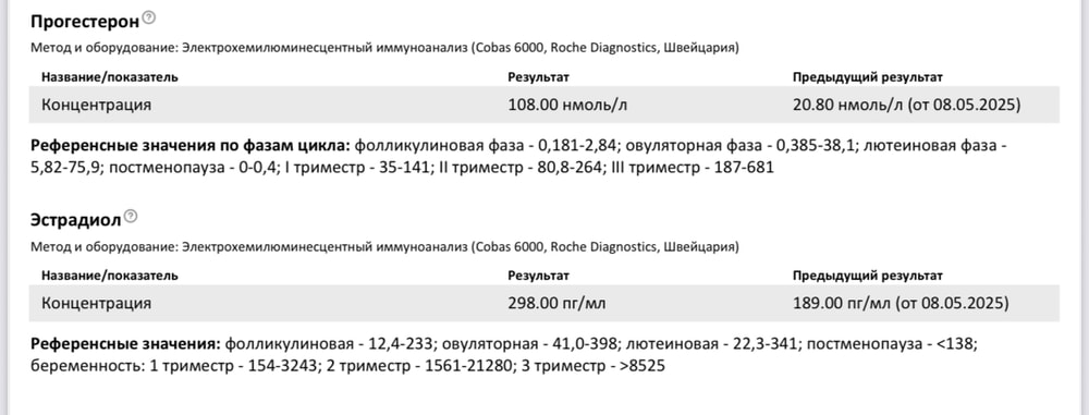Прогестерон и эстрадиол пришли сегодня тоже хорошие вроде)