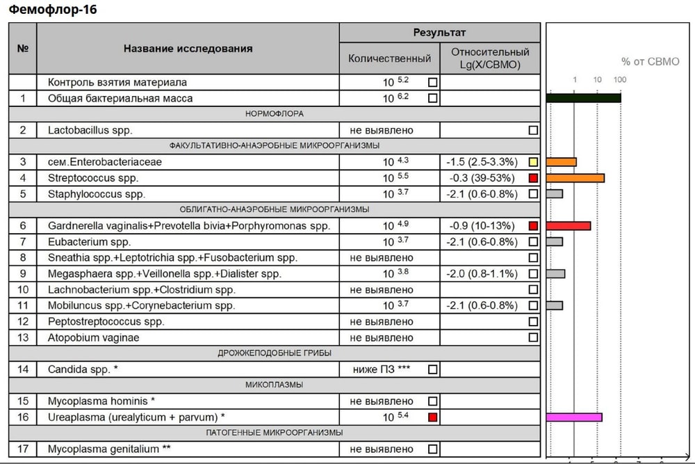 После операции через 3 недели по рекомендации врача, кто шил, сдала фемофлор 16 из влагалища, бакпосев из цервикального, бак.посев мочи..... и тут у меня вылезла жесть..