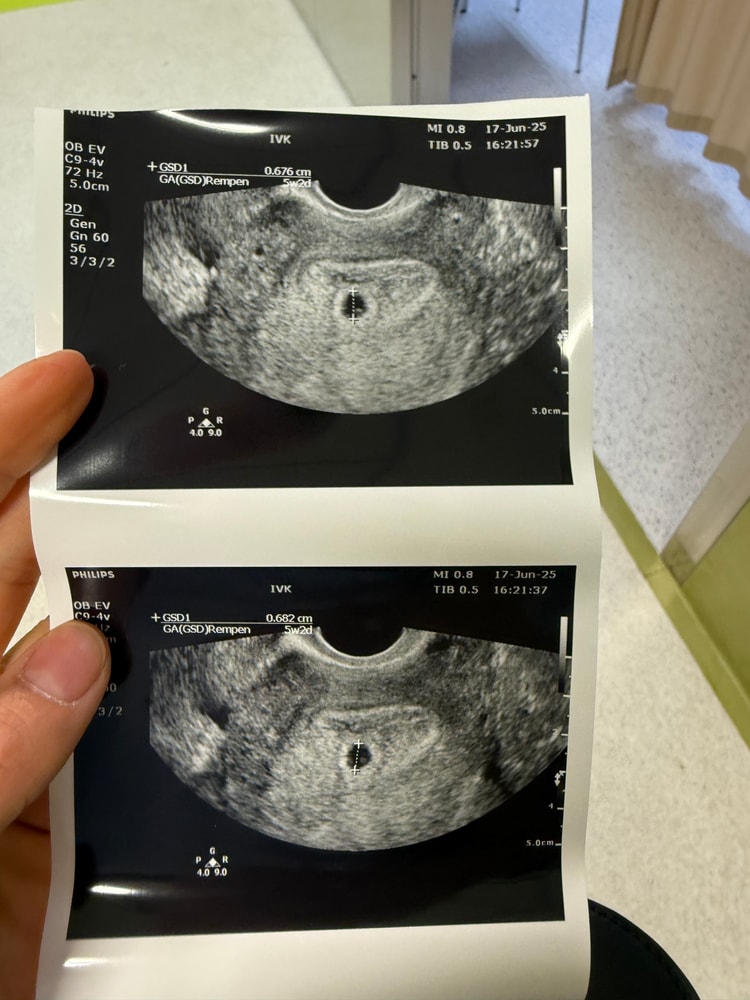 Результаты УЗИПоскольку РЕ назначила узи только на 27 июня, то я сходила уже к своему гинекологу, чтобы убедиться, что беременность находится в матке. Если считать по циклу то в этот день было 5 + 6, а по узи 5 + 2. Сказал прийти 25 июня и что тогда уже возможно будет рассмотреть эмбриона🤞🤞 и будет ясно один или два🐣🐣