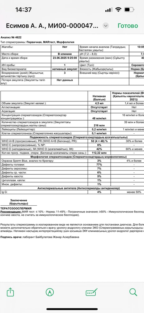 Вполне себе ничего. Воспалений похоже нет, количество и подвижность отличные. Морфология не очень, но дефект головки только у 77. Дефект хвоста считай тоже норма. Просите 50/50 эко/икси и пгд хотя бы одного можно для гарантии, если есть такая возможность.