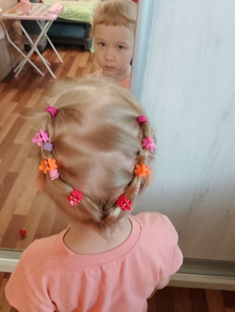 Растет, развивается, непоседничает. Поет песенки, читает стихи. Начала сама играть больше времени. Любит помогать готовить, если я на кухне, то она со мной. Даже чай помогает делать) На месте как обычно не сидит. Шкодничать тоже очень любит))