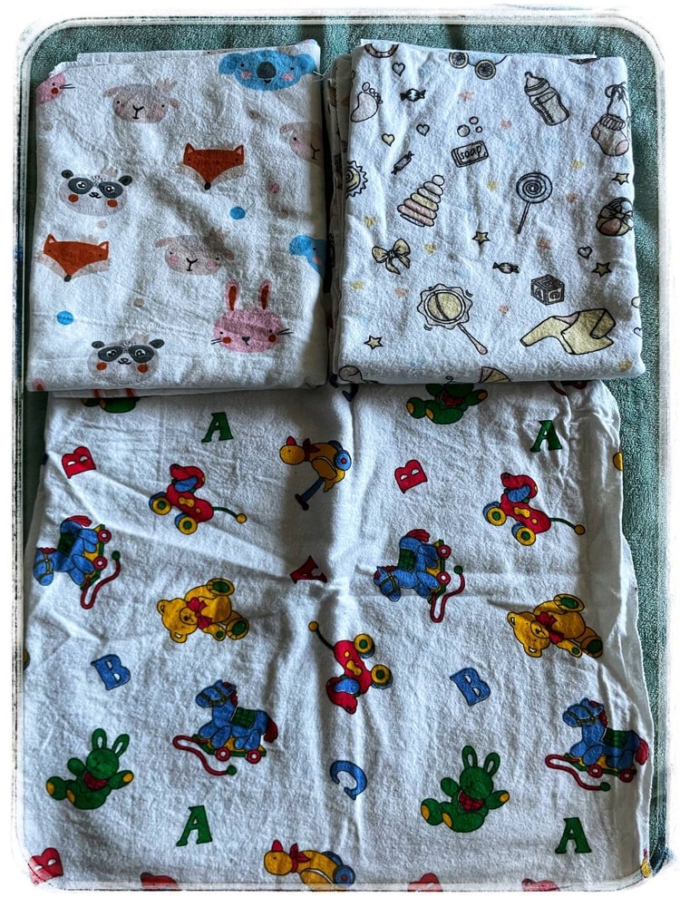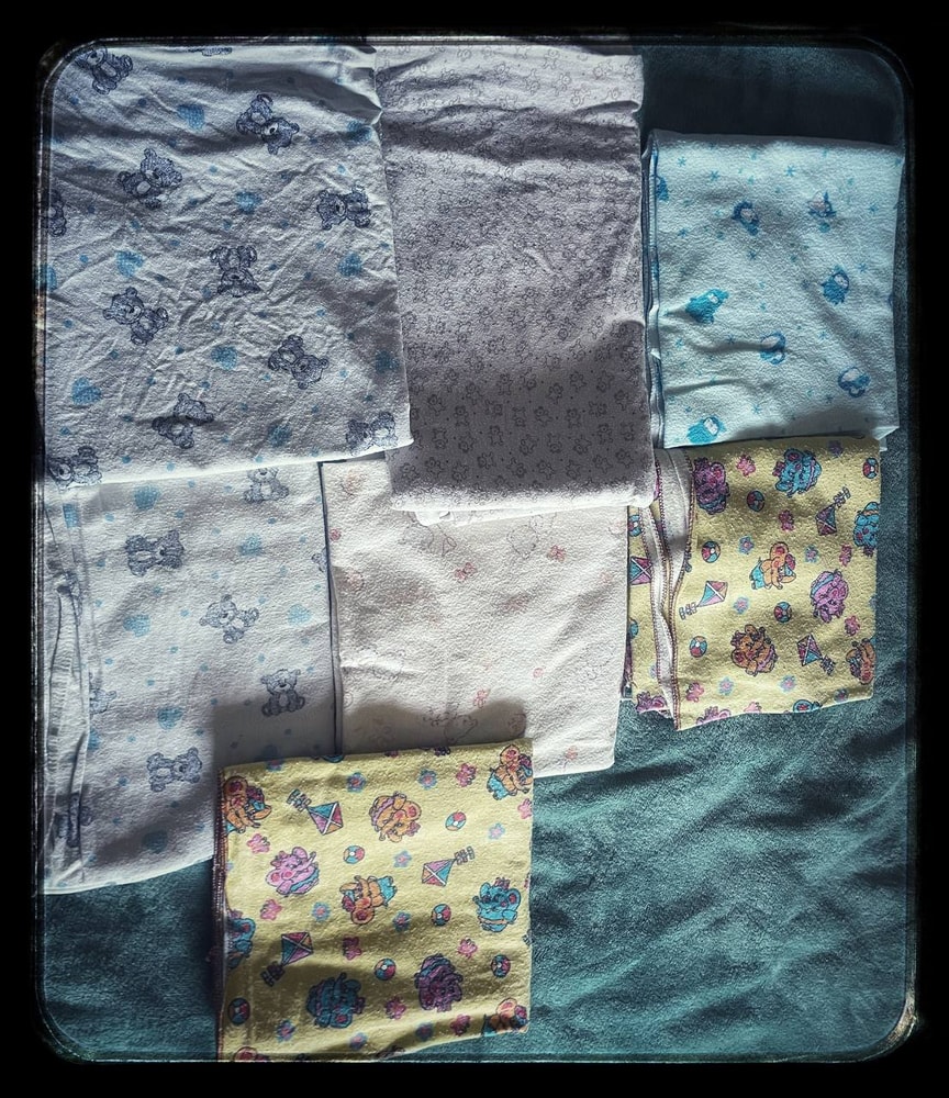 Тема: пеленки и другие текстильные изделия. Пришли мои красивые пеленки! Я довольна, как слон! Еще пришли многоразовые подгузники и разными вкладышами. Буду тестировать. Может потом и отзыв накатаю. Слюнявчики муслиновые пришли. И я нарезала клеенку медицинскую (тема голожопства и высаживания сидит в моей голове) для подстраховки мебели. Что-то отдала мне подруга новое, что-то от племянника осталось б/у. А чисто белые - это бабушка работая в стоматологии забрала новые медицинские ветоши (их списали, потому что не тот размер нашили).