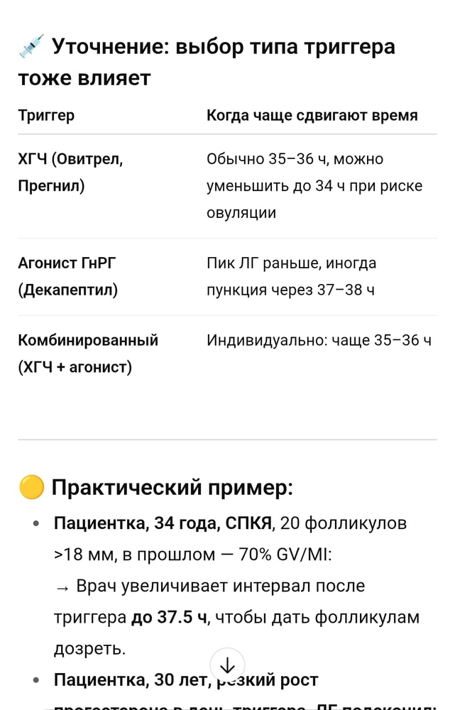Я что-то задумалась, почему у меня планируется сдвиг до 35 часов, если проблема в незрелых клетках. Спросила у ИИ, еще больше засомневалась (см скрины).