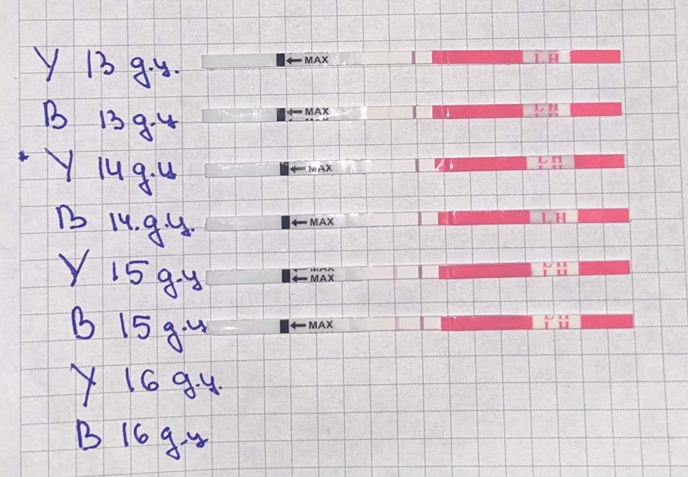 Судя по тестам у вас еще не было пика ЛГ. Полоски должны быть одинаково яркими. Я делал три раза в день, использовала тесты Фемиплан