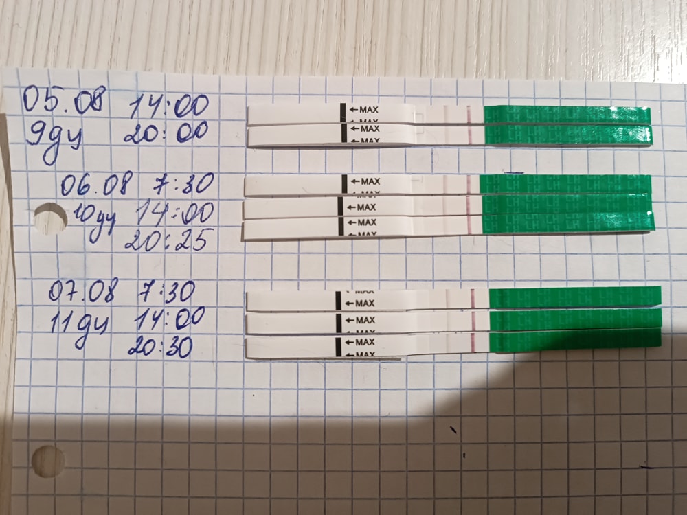 Отслеживаю овуляцию по тестам (с врачом я уже обсудила мои неяркие полоски, ориентируемся на УЗИ в первую очередь):