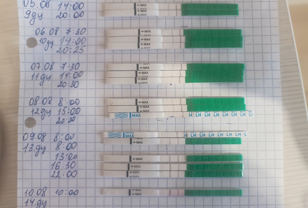 По тестам на овуляцию - первая полоска всё ещё ярче. Пик ЛГ длится более 24 часов, пошли вторые сутки. Чаще всего овуляция наступает через 24-36 часов от пика, реже через 12-48 часов. Если так, пока есть шанс.