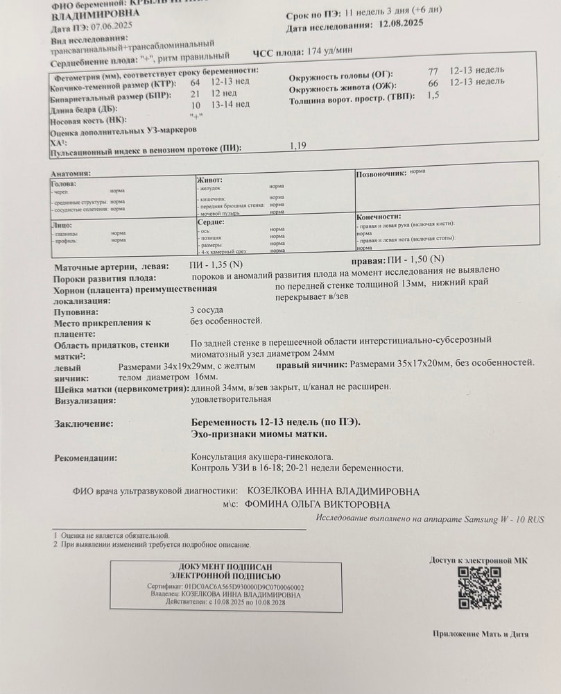1ый криоперенос_1я беременность_1ый скрининг ✅