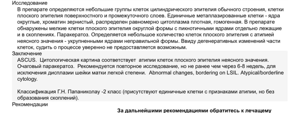 Olga, хуже это заболеть разом шейки матки(( у вас сейчас неопределённый результат по цитологии. У меня так было, а через несколько месяцев cin1, а ещё через полгода уже cin 2-3( По сути вам правильно написали, надо пересдать через несколько недель онкоцитологию и посмотреть, что там. Но если впч уже есть, то вероятность развития дисплазии очень велика( Вам к гинекологу, может при такой картине можно сделать кольпоскопию, а ещё лучше прицельную биопсию (но не факт, атипичных клеток мало, можно при биопсии просто не попасть в пораженный участок) и по итогам уже принимать решение. В целом вы правы в том, что возможно что репродуктивные планы сдвигаются на некоторое время. Вроде когда-то тут писали, что можно пройти стимуляцию, получить эмбрионы и уйти в крио решать проблему с шейкой. Но хз, как на практике. Особенно если это омс и свежий перенос обязательно должен быть🤷‍♀️ А конизации если что не бойтесь. Если не дай бог будет дисплазия, то конизация решит эту проблему. И даже не факт что повлияет на вынашивание. Я после конизации боялась ицн, но все ок. На 12 неделе шейка 44 мм, на 16й - 37мм👌
