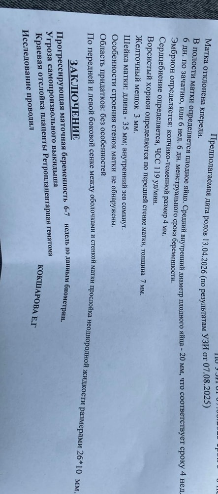 Узистка сказала шанс 50/50. Может у кого такое было. Я пока дома лежу. До этого лежала в больнице 10 дней.