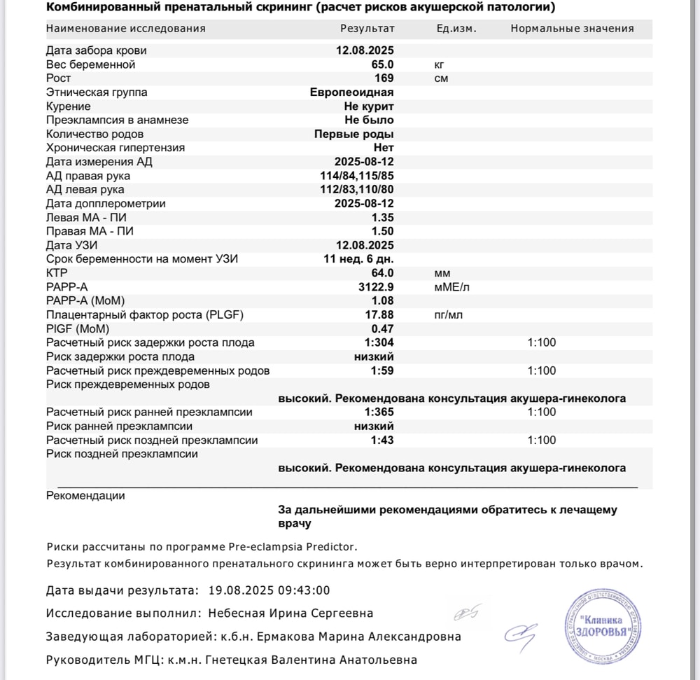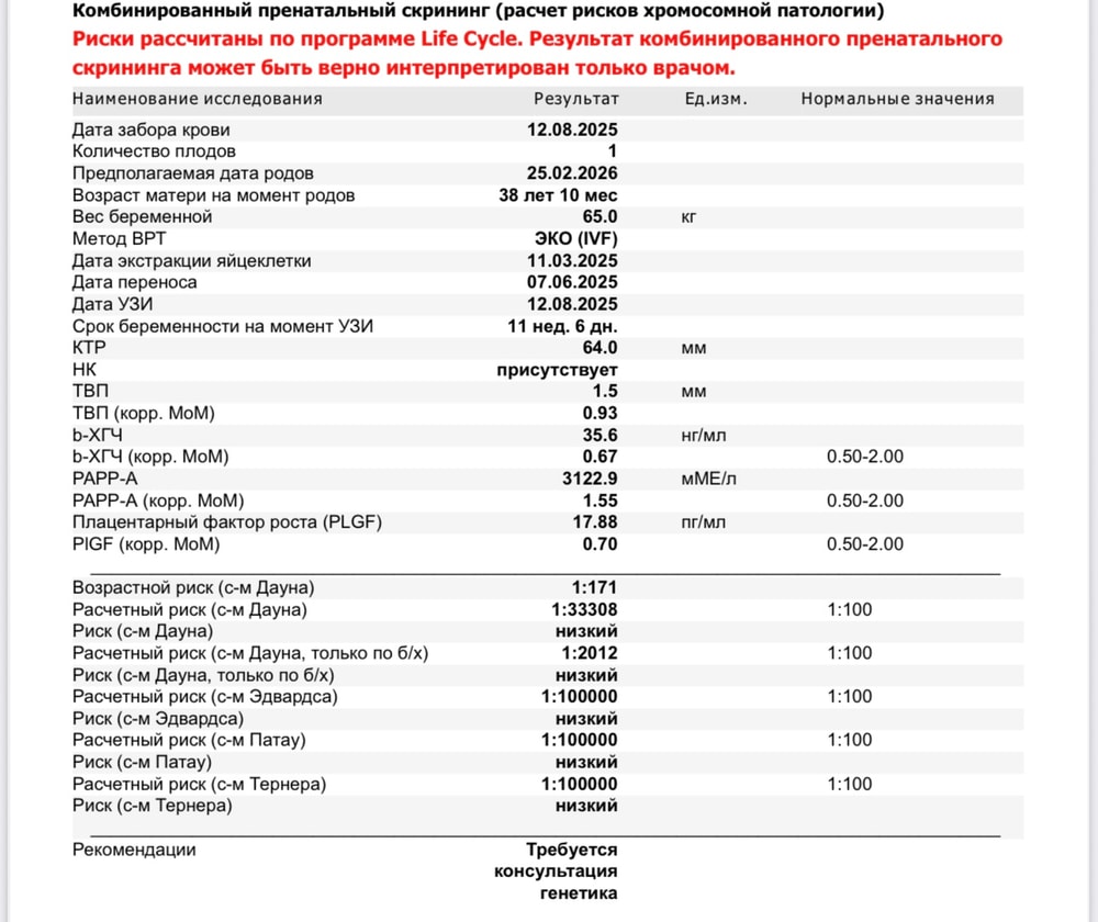 Пришел результат крови, который брали после скринингового УЗИ.