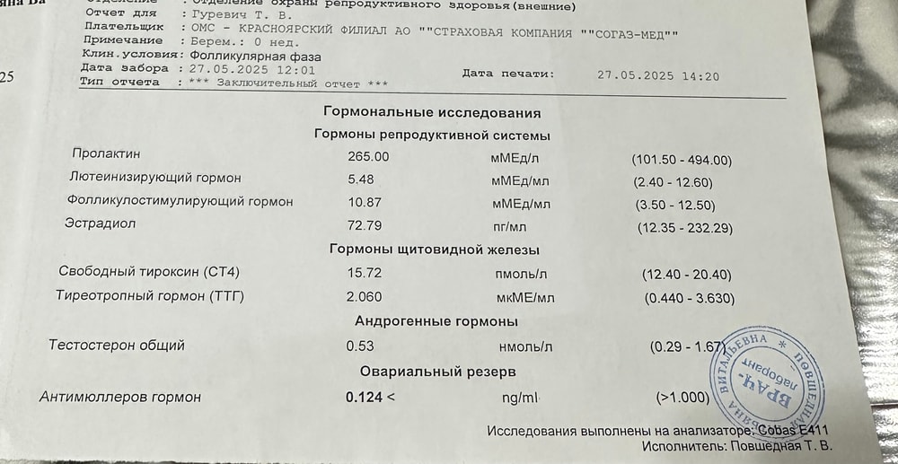 Tanya Kryzh, фолликулостимулирующий гормон 10.87 у меня, а лютеинизирующий гормон 5,48. Тоже 29 лет