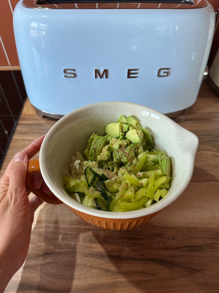 А пока ужинаю вот таким зеленым салатом 🥬🥑🫑🥒