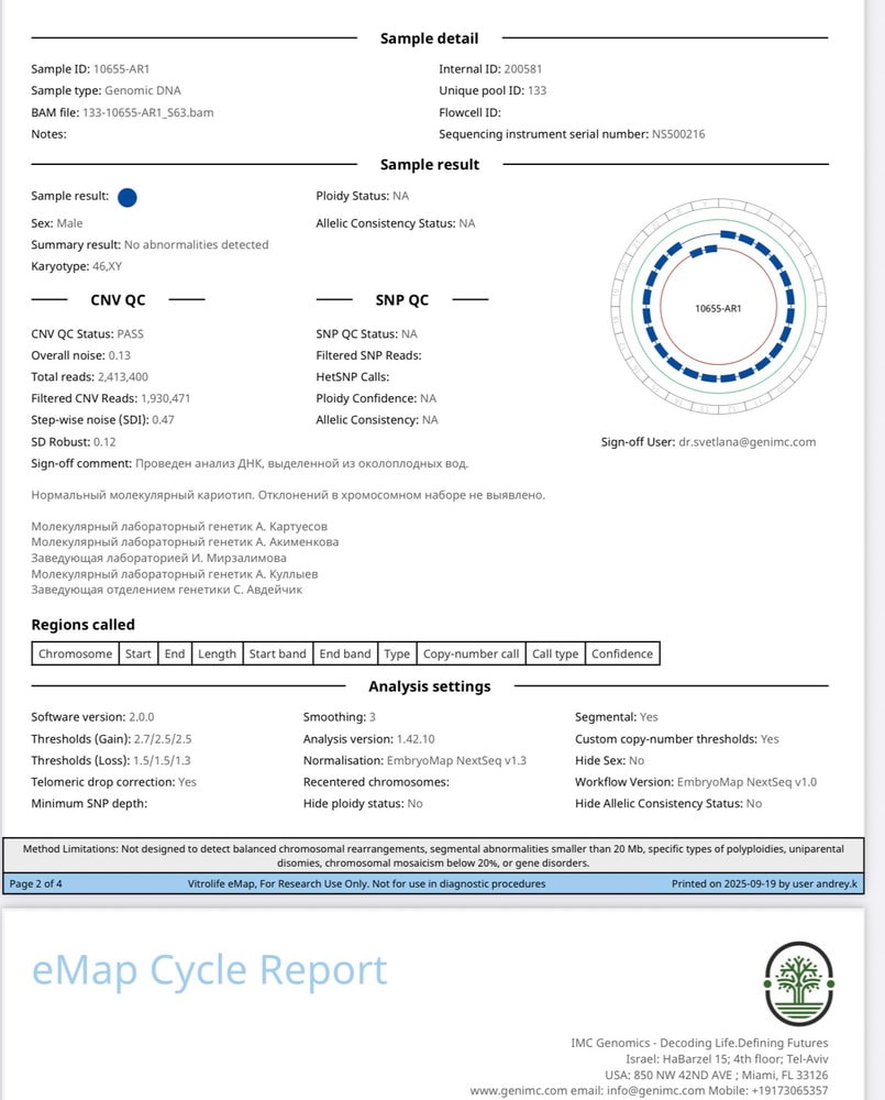 Результаты амниоцентеза