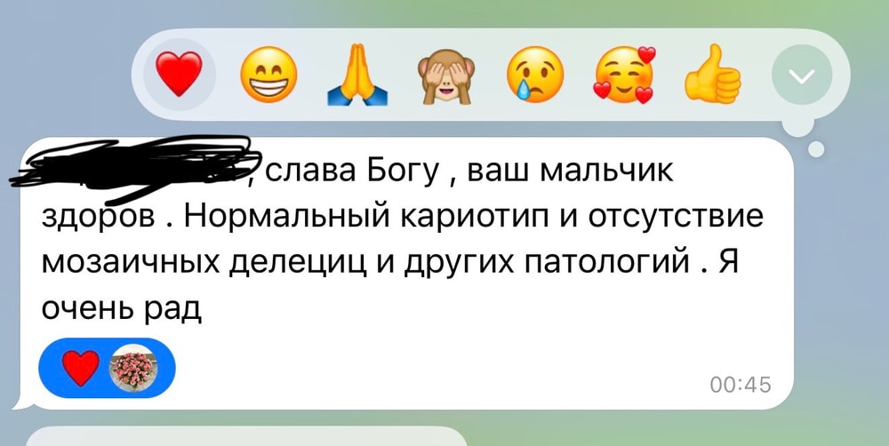 Выписалась вчера домой, и тут вечером в 23:45 я получаю результат амниоцентеза