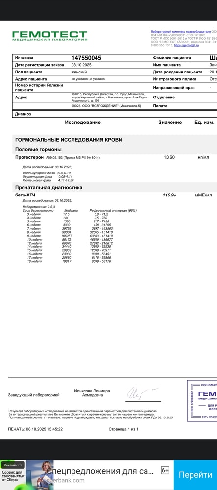 Я сама сегодня открыла результат ХГЧ, а он выделен КРАСНЫМ)) реально пугает, хотя новость, на самом деле, очень приятная😁