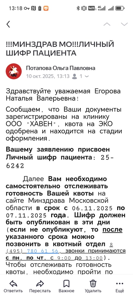 Сколько эмоций вызвало это письмо. Я чуть не заплакала. Кто проходил все эти обследования для эко понимает, что это значит.