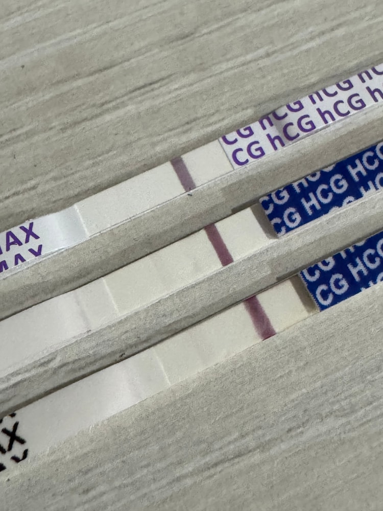 Сразу скажу полоски бледнючие совсем. Я немного затемнила первое фото, так как на камере они еще бледнее чем в реальности . Но они правда призрак прадеда ) тесты с чувствительностью 15 - призрак деда, а чувств.25 - призрак прадеда ) тоесть хгч на 7дпп- дай бог - 20. Ну сами понимаете ..очень сомнительно ..