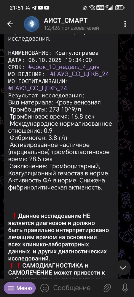 Юлия в ЭКО-мама 2 месяца Анализ Всё о нашей беременности Девочки подскажите это плохо? Посмотрите еще 20 записей на эту тему Лучший ответ Ryabina У вас все абсолютно нормально. Фибриноген в беременность может повышаться и это вариант нормы. 14.10.2025 Ответить Юлия Ryabina, меня беспокоит что фибринолитическая активность снижена 😔 14.10.2025 Ответить Ryabina Юлия, это физиологический вариант нормы. Если бы этого не происходило - женщины в родах погибали бы от кровопотерь. Не ищите проблем там, где их нет 😐 14.10.2025 Ответить Отменить Ответить Кровянистые выделения эко Беременность Чаты Беременных Выберите чат: Январята-2026 Февралята-2026 Мартята-2026 Апрелята-2026 Майчата-2026 Июнята-2026 Июлята-2026 Августята-2026