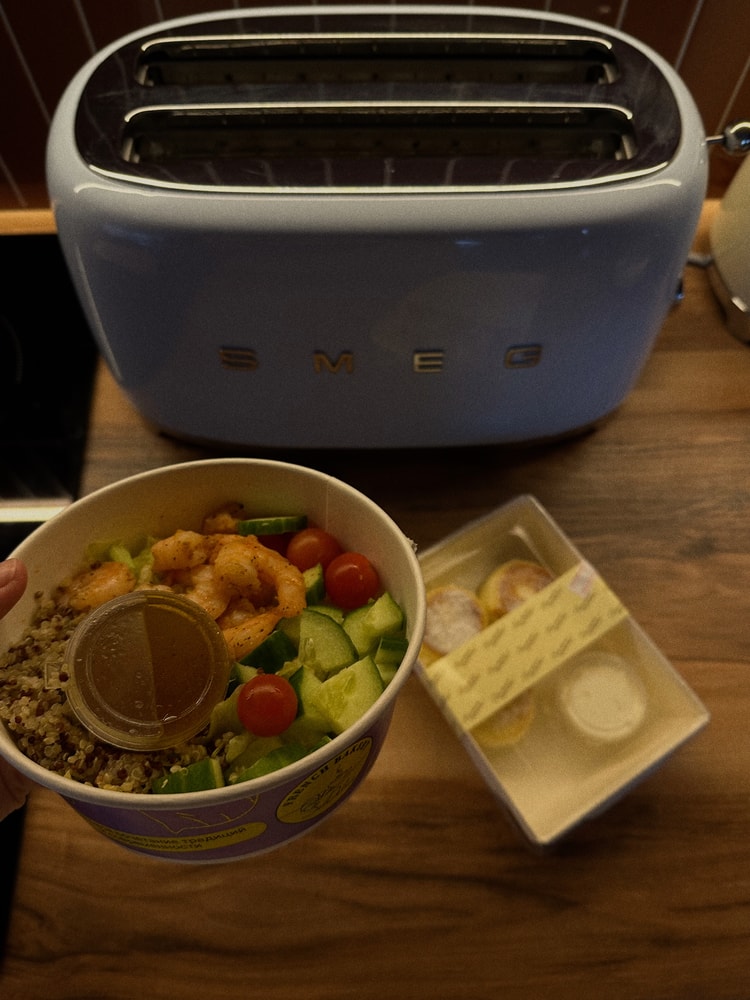 Зашла после приема во French Bakery за вкусненьким боулом, утром был творог с ежевичным вареньем…хочу постоянно есть😫Сырники старшенькой своей. Наконец у дочки каникулы в школе, меньше стресса мне😅
