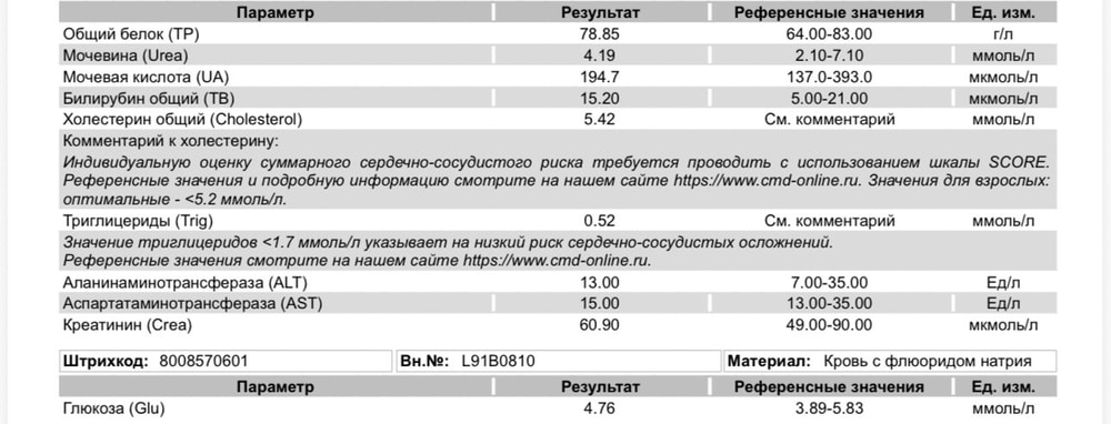 Анализы и процедуры. Помощь в расшифровке результатовДевочки, пришли результаты анализов, повышен холестерин 5,42. Меня не пустят в протокол? 😭