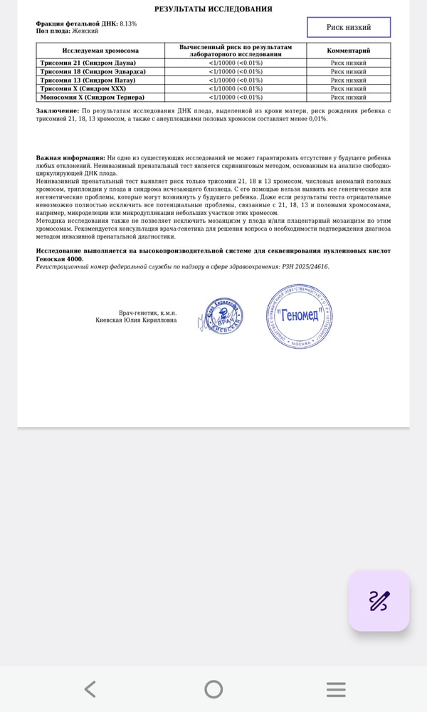 Пришел нипт, все риски низкие ,я очень рада, ела много цитрусовых, потому что у меня девочка-слатушка;))