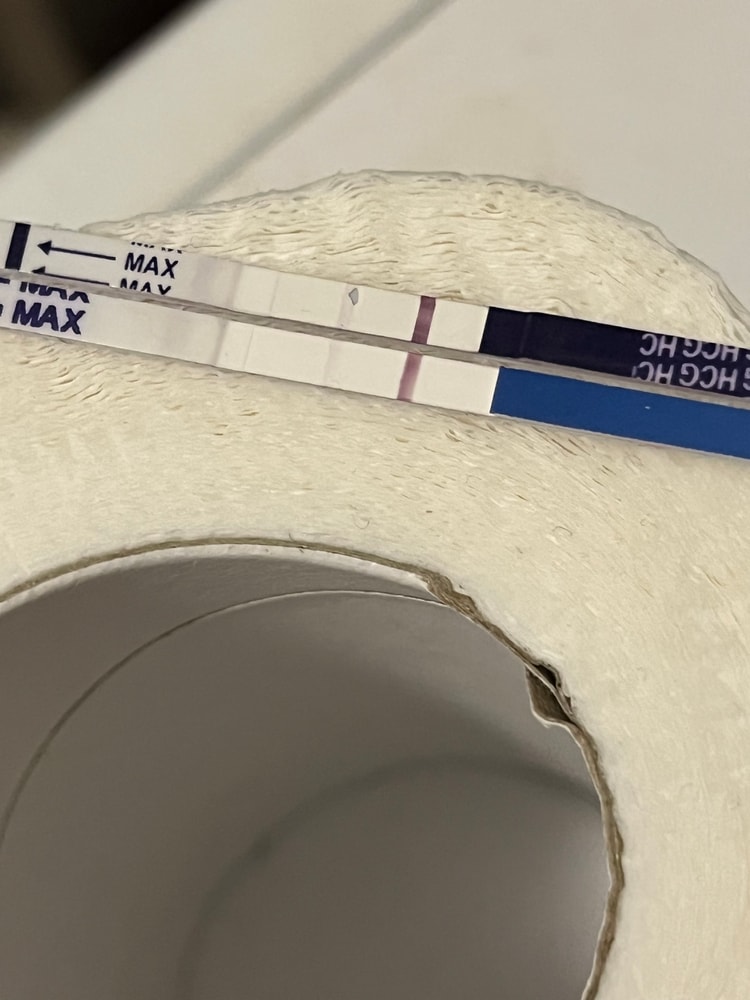 На фото тесты 6ДПП (верхний)и сегодняшний на 7ДПП (нижний)Они одинаковые, бледненькие🥺