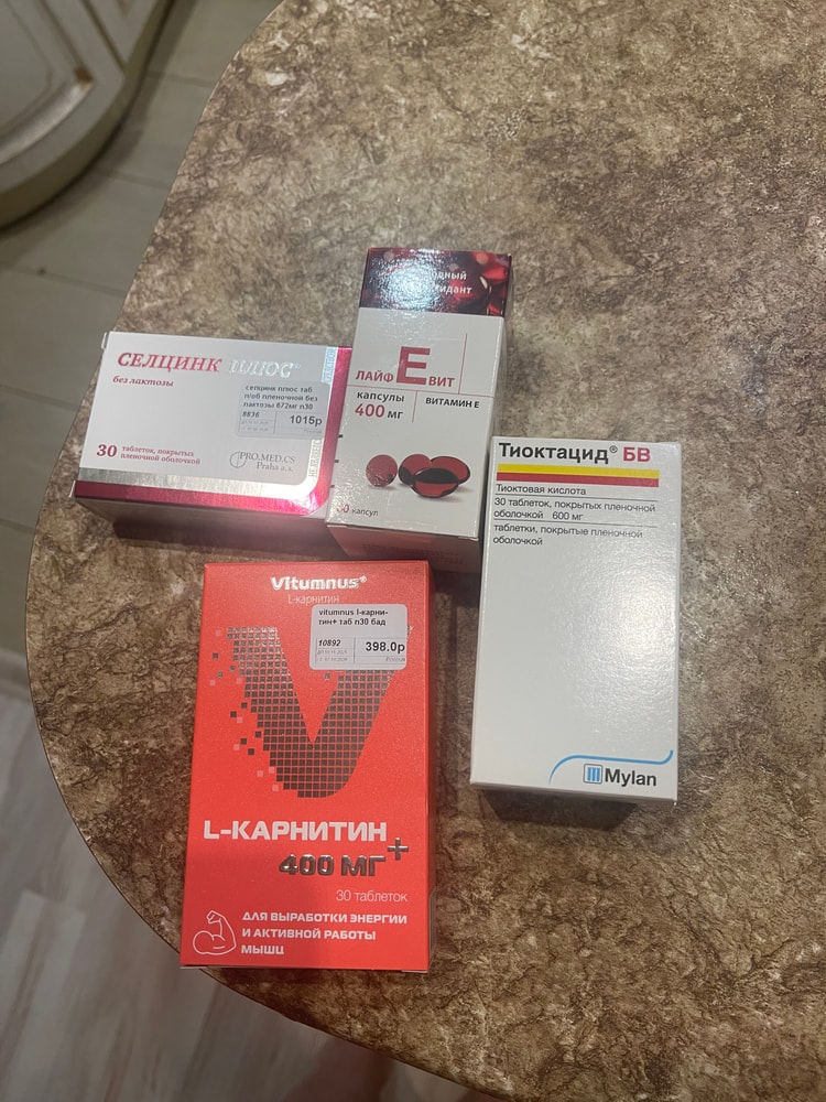 Татьяна , Тиоктацид, как я правильно понимаю, для улучшения кровообмена. При многих болезнях назначают. Но я могу ошибаться. Очень плохо в этом во всем разбираюсь. Поняла, только что, это липолевая кислота. А вот L картнитин лошадиными дозами по 3000 мг в день меня прям веселит - не знаю с какой целью:) Я его принимала, когда в тренажерный зал ходила и железки тягала - хорошо помогал худеть, но именно при физ нагрузке. Просто так если без спорта не пила его. Видимо мой и так не то чтобы упитанный муж скоро станет совсем худой:) а спермики будут бодры и активны:))