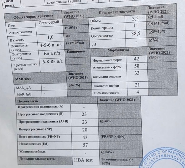 Непривычный вид у спермограммы, поэтому не понимаю, почему напротив жизнеспособности прочерк.