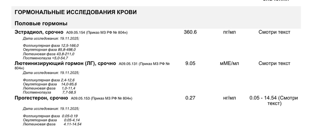 Среда 19.11 на 11дц. сдала гормоны, пика лг нет,