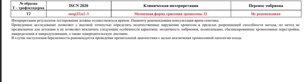 У меня тоже есть эмбрион мозаик по 22 хромосоме трисомия, но к переносу рекомендован после консультации генетика. И я планирую его перенести, почему интересно у вас не рекомендован?