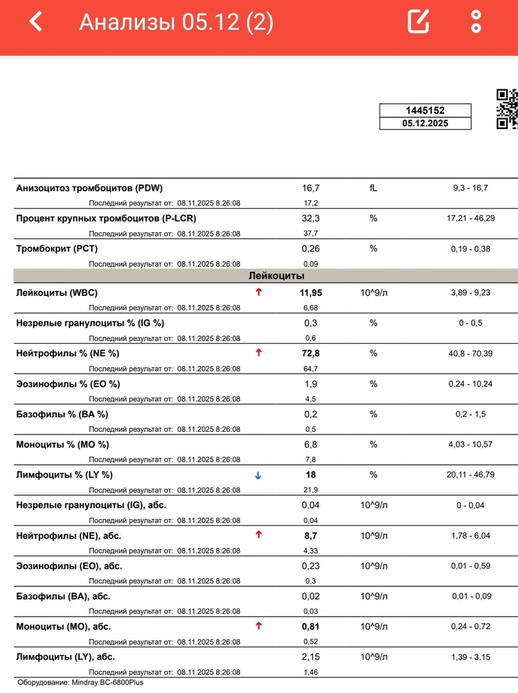 Анализы и процедуры. Помощь в расшифровке результатовВсем привет, ситуация такая - во время стимуляции простудилась, не сильно, но простуда держалась неделю и вот сегодня, сдала анализы перед пункцией и ожидаемо повышены лейкоциты в крови. Я знаю, что это нормально после простуды, но что-то начинаю волноваться - подсадка не планируется, но пункцию-то в любом случае проведут, не отменят из-за этих показателей?