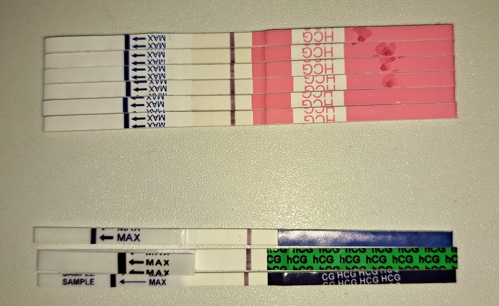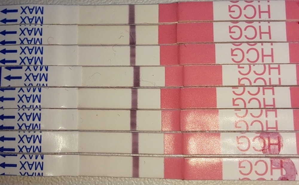 Что имею сейчас 9дпп, в 5 утра тест с тенью ( они в принципе почти все слабые , либо приглядыватьсянадо, либо на фото слабо отображаются), призраком призрака на тесте , в 11 часов спустя 2 часа от укола чуть слабую полоску как на 8 дпп. В животе наполненость сохраняется, грудь то сдувается, то надувается, болезненная все дни. Живот и поясницу тянет с 5 дпп, Просыпаюсь в 3, 4, 5 утра. В поддержке утрожестан 900, пролюкса, клесан, прогинова 3т.