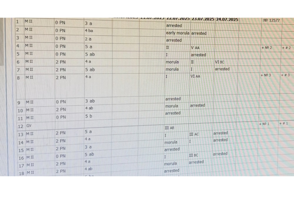 В прошлый раз все морулы, I и II вместе взятые дали вместе 3 эмбриона АА и АВ, и еще три ВС (их эмбриологи отсекли).