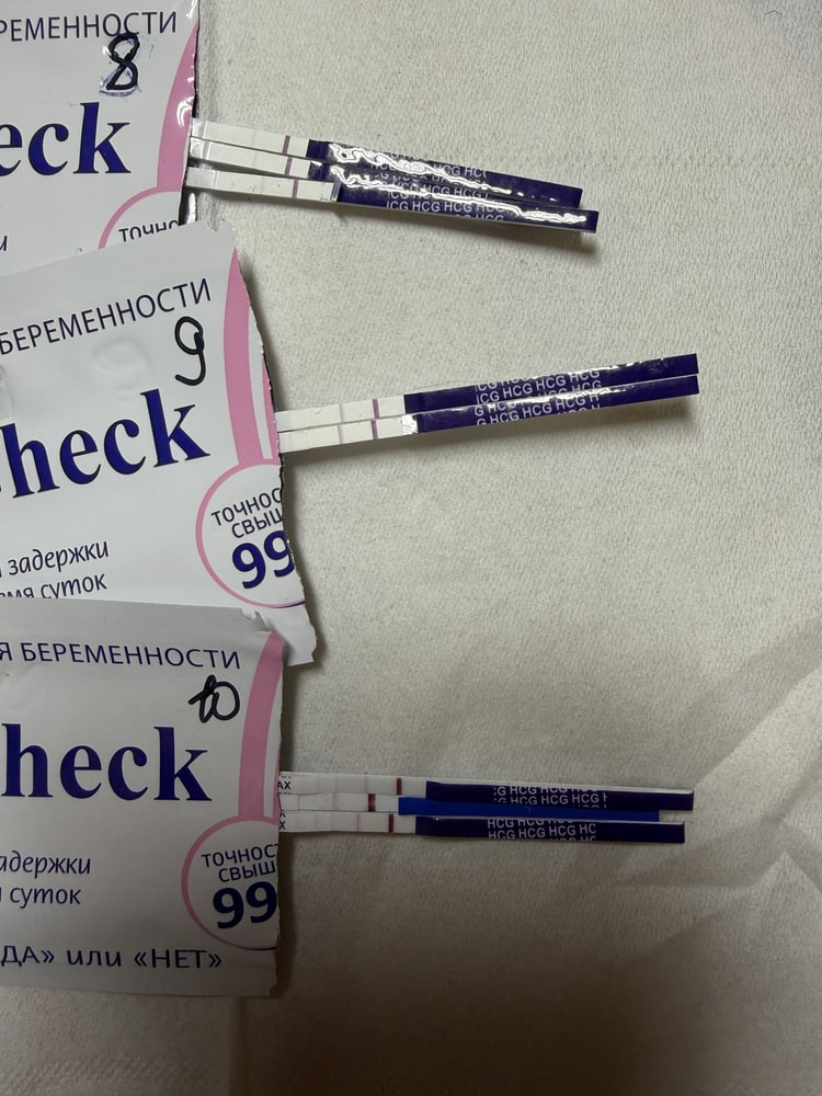 Тесты могут ярчать совсем чуть-чуть раз в 3-4 дня. Можете у меня глянуть. Но опять же- это не показатель . Главное, чтобы не тускнели. У меня не 9пп - 188 хгч был