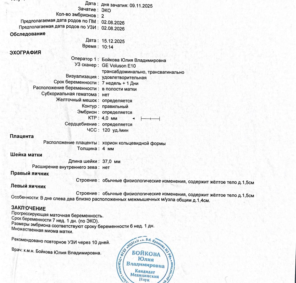 ЭКО 40+. Второй протокол. 32 ДПП эмбрион отстает по узи.