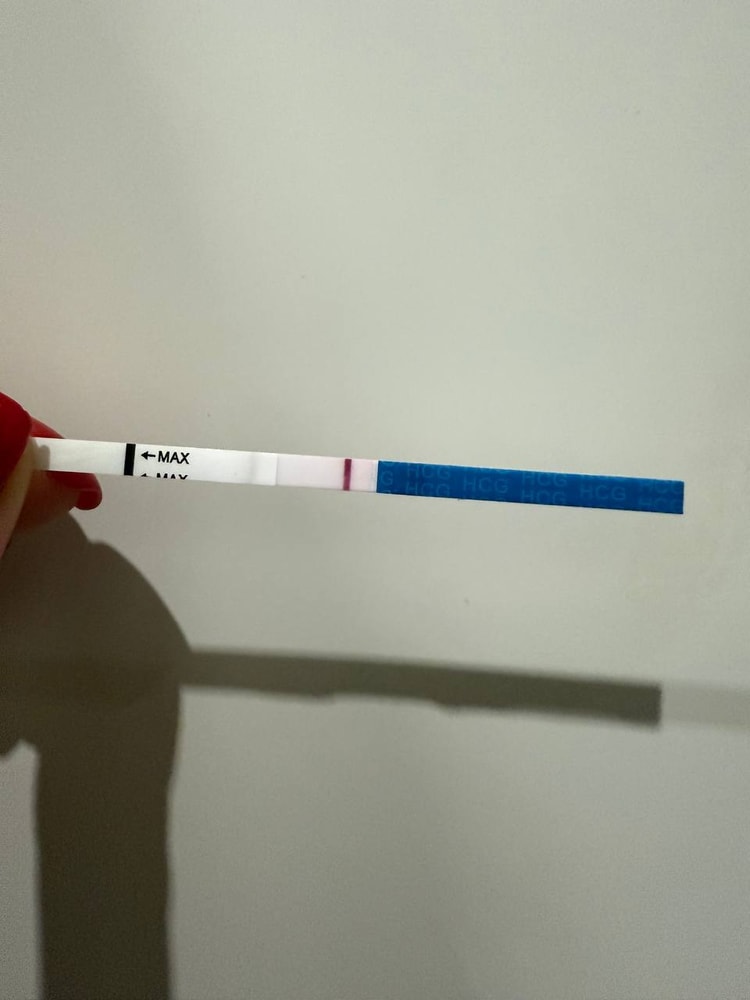 один день был полоска почетче, второй раз уже бледнее, хгч затем на следующий день 0.27