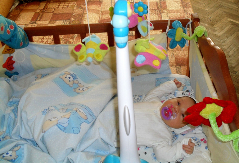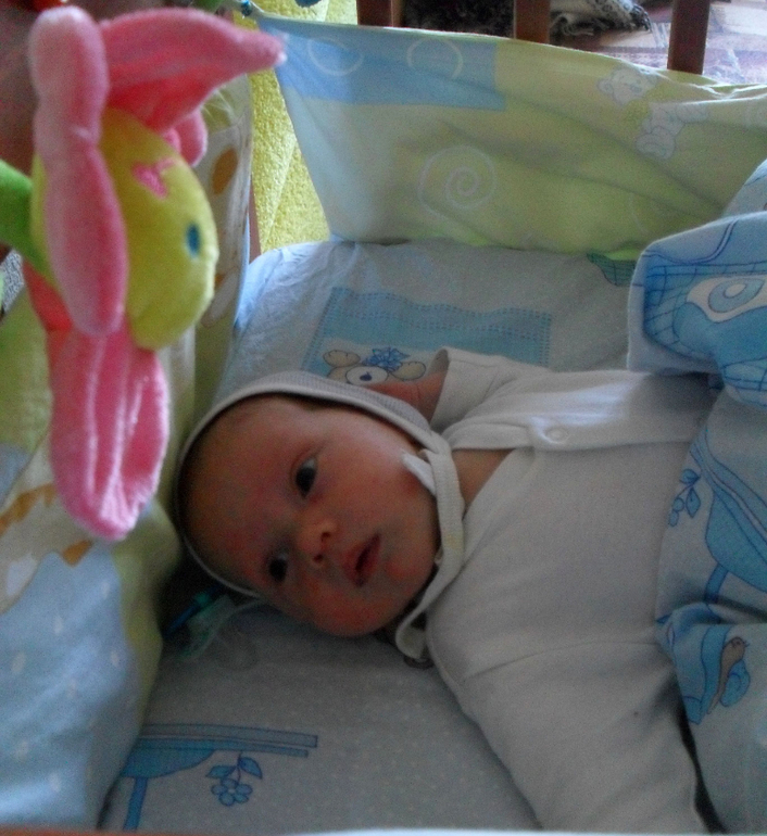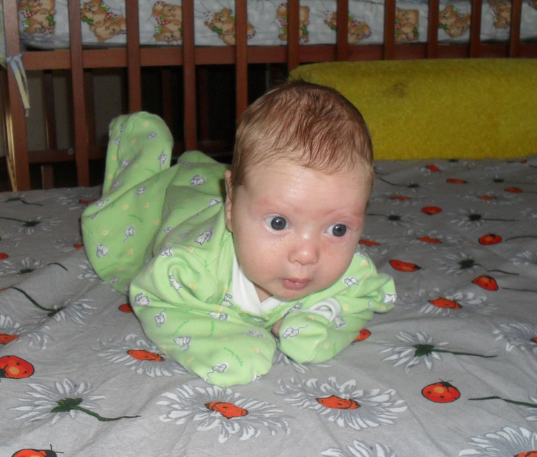 Формы головы у малышей разные. У Наденьки голова круглая, она с лёгкостью лежит на затылке. А у Сени голова остренькая, на затылке лежать невозможно. Поэтому только вбок. И та же проблемка возникла, что у Лёшика в своё время. Начал Сенечка предпочитать правую сторону. И справа голова чуток уплощилась. Но я засекла это дело и пресекла. То пелёночку рулончиком подкладывала, то отворачивала голову в другую сторону, приноровилась его на кормление укладывать так, чтобы головушка влево была повёрнута. И таки отучила! Будет расти наша головка и выровняется, как у Лёшки выровнялась.