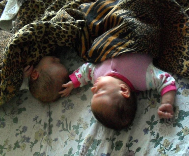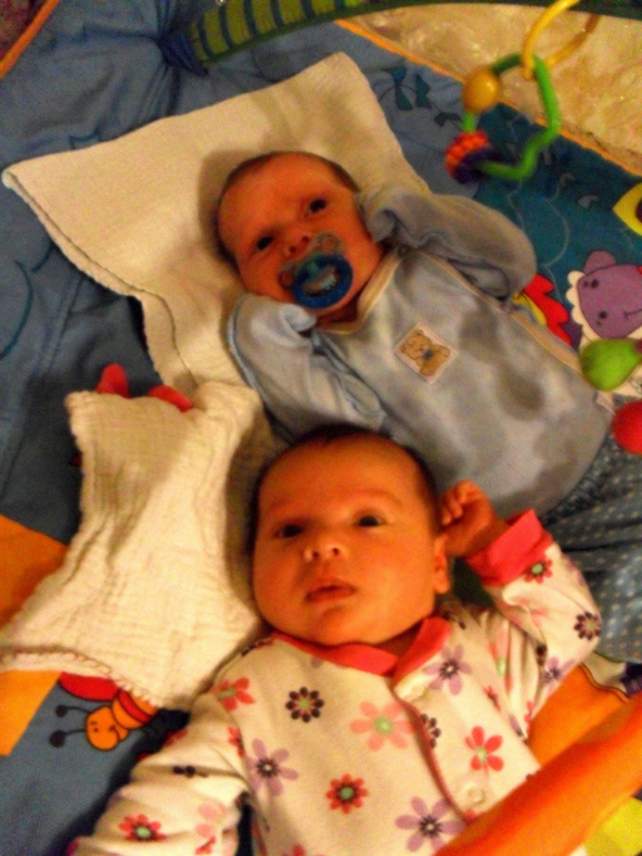 Зато в конце месяца произошло принеприятнейшее событие из тех, что отравляют радости ГВ. А именно - лактостаз… И как я, опытная кормящая, его пропустила? Собственно так же, как и при кормлении Лёшки пережила до 10 таких неприятностей. В этот раз на той же проблемной правой груди, почти в том же месте. Расцеживала полвечера вручную, молокоотсосом, прикладывала деток. В итоге рассосали малыши мой лактостаз. А секрет был в смене позы! То есть, обычно днём я их кормила в позе из под руки, а ночью - лёжа в кольце рук. Поза лёжа помогла нам достать до тех закупоренных протоков. В общем - боевое крещение лактостазом пройдено и в этот раз.