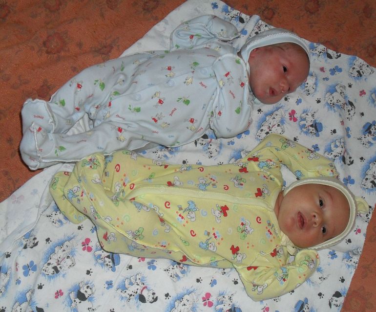Второй месяц начался для нас с планового посещения поликлиники. Педиатр доволен нашими масявочками и их мамой тоже. Хотя я очень и очень переживала, как там с весом нашим будет... Малыши вели себя на осмотре прилично, а я, если честно, обалдела от ажиотажа по поводу наших персон в поликлинике. Все педиатры и медсёстры приходили посмотреть на нас с детками, и у всех вопросы на одну тему - как я таких крупняшков умудрилась выносить при своих габаритах.