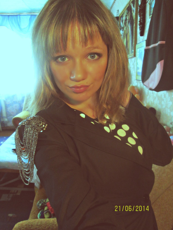 Где вы в позе лотоса фотка, где возле двери в кожанке,,хороший натур. цвет, видимо только начинали делать мелирование. Свой цвет то у вас русые волосы.В шоколад не надо.Блонд это ваш цвет, но благородный, а не перегидроленные волосы как на первом фото.