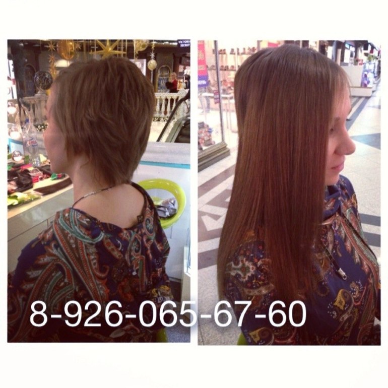 - Капсульное (горячий метод ;подходит для средней толщины волоса или густых волос; позволяет делать различные прически ; срок носки до коррекции 2,5 -3 месяца)