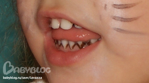 Детские зубные проблемыПримерно в год у нашего ребенка стали появляться темные пятна на зубах. Я оббегала кучу врачей, сказали что это некий пищевой налет, который появляется на молочных зубах и исчезнет только когда они выпадут. Диагноз кончно печальный.... к трем годам этого налета стало очень много, зубы казались вообще как-будто гнилые... Еще в 2 года водили в частную стоматологию, сказали, что это можно отчистить, но только когда ребенок станет старше.