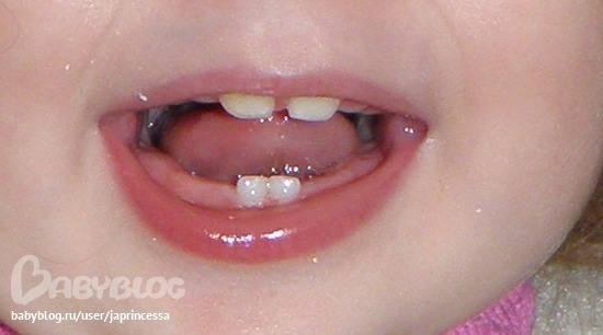 Просто последите как коренные полезут.если все дело в короткой уздечке- ее подрезают. У нас такая же ситуация- не переживайте. Пока это норма)