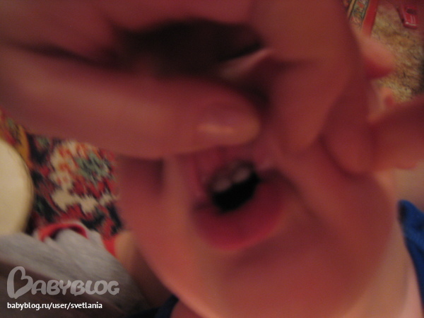 Когда моему сынишке было около полутора лет на зубах начал появляться черный налет (около десны). Показала педиатру.. Она сказала, что подобный налет бывает при дисбактериозе, но т.к. у нас чистый язык и других признаков дисбактериоза нет, то с анализами на дисбактериоз торопиться не стоит. Надо начать с визита к стоматологу, что мы и сделали.. Стоматолог сказала, что это не кариес, т.к. налет счищается (она счистила чуть-чуть с помощью палочки). Сказала, что надо убирать бутылочки. Мы пили компот из бутылочки. Заменила бутылку на поильник. Пить стал меньше, но на налет это никак не повлияло.. Далее сказала чистить пастой без фтора. До этого мы чистили без пасты. Я купила пасту «Рокс» и начали чистить 2 раза в день. Конечно, полноценно чистить не получается, до конца рот не открывает.. Утром чищу сама как могу, вечером муж держит, я чищу, но всё равно чистка достаточно условная.. :( Нам сейчас 1 год и 10 мес. Счистить налет так и не получилось. Показала ребенку опять педиатру. Она сказала что язык опять же чистый и дисбактериоза скорее всего нет. Посоветовала сходить ещё раз к стоматологу. Стоматолог сказала, что кариеса нет, нужно продолжать чистить. Сказала, что такой налет бывает при проблемах с желудком, но т.к. никаких других симптомов нет, то видимо у нашего ребенка просто такая особенность.. + скорее всего это из за соски.. Матвей засыпает с соской (днем соской не пользуется, соска для него – это сон))) Мне показалось странным, что налет из-за соски.. Может быть у меня просто не получается квалифицированно счистить налет или всё-таки необходимо проконсультироваться с гастроэнтерологом и убирать срочно соску (Матвей очень сопротивляется))? На мой взгляд с желудком у Матвея всё хорошо, т.к. он ни на что не жалуется, пищу готовлю в соответствии с возрастными рекомендациями, шоколад и т.п. мы не едим.. Единственное на ночь и иногда ночью пьем компот, но я его делаю сама и сахар не добавляю! Стоматолог сказала, что раз компот без сахара, то это не страшно... Фото наших верхних зубиков прикрепляю, но оно получилось плохое L И эту да с боем сделали L Потом ещё пол часа успокаивались.. Поясню, т.к. видно, конечно, очень плохо: у нас черный налет на зубах около десен.