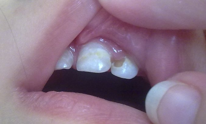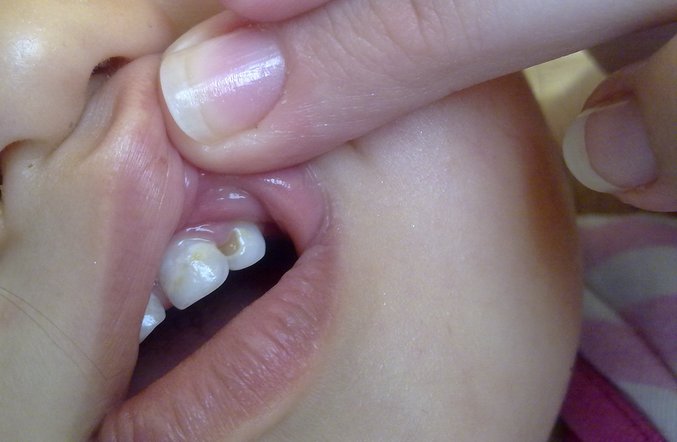 у дочери (всего лишь год и 8) налет на пердних зубках.