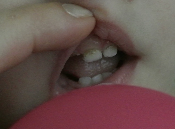 Доче 1г 4 мес, приблизительно 1,5 месяца назад появился белый налет на верхних зубках, после чего эмаль зуба стала разрушаться... Были на тот момент у педиатра, она сказала гипоплазия и выписала кальций Д3 никомед. Пропили, но эффекта никакого, более того, ситуация ухудшилась (фото прилагаю).