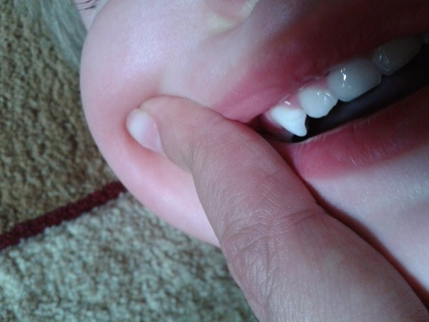 Ребенку 2 года и 4 месяца. Сладкое не едим практически. Очень-очень редко. Зубы чистим 2 раза в день. На клыке справа обнаружила белое пятнышко. Что это такое? Оно не счищается. А как бы внутри