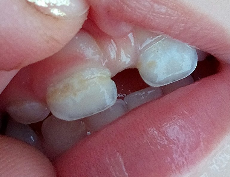 Здравствуйте, дочке 1,10 недавно обнаружили на верхних зубиках налет желтоватый, чистим зубы регулярно, но налет это не убрало...а потом под налетом стали проглядывать неровности, как полосой... Что это? Кариес, с эмалью что-то? Оговорюсь, что именно эти зубки прорезались сразу неоднородными...та часть которая ближе к десне была просто белоснежная, а пониже уже как и все остальные зубики.... К сожалению к стоматологу сходить невозможно в данный момент, дочка неконтактна с врачами... Очень надеюсь на вашу подсказку! И возможно ли как-то приостановить, замедлить этот процесс какими-либо препаратами, пастами и т.д. Спасибо!